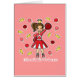 チアリーダーのプリンセスはブル・ホーンおよびpomのpomsの彼女のかわいく赤いチアリーダーの用品類そして背景を持つチームのために元気づけて準備ができています! チアリーダーをすることを愛する女の子のための素晴らしいギフト。