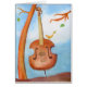 水彩イラストレーション。青い空と白い雲を持つ素晴らしい日に、チェロの上の小さな鳥が優美な葉で話しているようだ。これは子供だけでなく大人にも最適な贈り物だ。あなたカスタマイズの文字でそれができる。