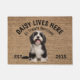 チベットのテリアパーソナライズされたドッグ愛好家ようこそdoormat。この歓迎マットはパーソナライズされた、あなたの犬の名前と一緒に行うことができ、スローガンも変更することができ、または自分の犬の写真を使用することができる(それが透明であることを確認する)。文字読:デイジーが住んでる....All treets welcomeデザインを編集して、フォント、色、背景色を変更する。あなたの犬の画像を置き換える場合は、透明な画像を使用する。引っ越し祝いパーティーのパーティー、休日、愛犬家、およびほとんどの大事な行事のための素晴らしい贈り物を作る。