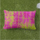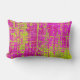 チャートレイズ、オリーブグリーン、ラズベリー、ピンクと明るい赤紫色の色合いで豊かな質感の抽象芸術は、この目を引く装飾用クッションを作る。