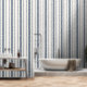 チャームフランスのファームハウスブルーストライプのとホワイト 壁紙
