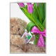 Teddy bear with pink tulip bouquet and card for Name Day.