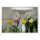 birdbathによる美しいチューリップの自然の花の写真、およびあなたの考えることは表現このカードから成り立ちます