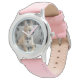 この時計は様々なバンドカラーとスタイルで利用可能。このピンクの革のバンドはどんな小さな女の子も喜ぶ。自分の犬の写真を好きな顔にもし入れることもできる。小さな違う男の子のスタイルを選ぶ。