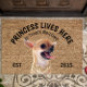 怒Chihuahuaパーソナライズされた Dog lover welcome doormat.この歓迎マットはパーソナライズされた、あなたの犬の名前と一緒に行うことができ、スローガンも変更することができ、または自分の犬の写真を使用することができる(それが透明であることを確認する)。文字読:プリンセスが住んでる....All treets welcomeデザインを編集して、フォント、色、背景色を変更する。あなたの犬の画像を置き換える場合は、透明な画像を使用する。引っ越し祝いパーティーのパーティー、休日、愛犬家、およびほとんどの大事な行事のための素晴らしい贈り物を作る。