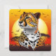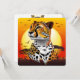 チーター(アシノニュックス・ジュバタス)は大きな猫で最も速い陸生動物である。白やバフの毛に黄褐色を帯び淡い色の、黒い斑点が均等に配置され無地のている。頭は小さく丸く、短い鼻先と黒い裂け目のような顔の筋がある。肩の位置は67-94 cm(26-37インチ)に達し、頭と体の長さは1.1~1.5m(3フィート7インチと4フィート11インチ)である。成人の重量は21~65 kg(46ポンドと143ポンド)。このチーターは93走~104km/h(58~65mph)でが可能で、軽い体格、長い細い脚、長い尾など、スピードに特化した適応が進化している。オリジナルヴェクトアート著作権ブルーダークアートザカメレオンアート。