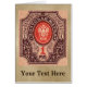 1889年に発行されロシアのたツァーリスト時代のワンルーブル切手(スコット・カタログ番号45)は、インペリアルの両頭のワシを示している。「古い紙」の背景画像に重ね合わせて、古いアンティークの封筒に似せる。アーチ型キリル読文字「ポクトバヤマルカ(切手)」その下の文字は「1」。ルーブ(ルーブル、略)」 独自の文字を追加