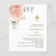 2人の女の子、姉妹の確認。ユーカリ飾の緑と金の葉金ゴールドとバラのの花を持つ白い背景。パーソナライズし、女の子の名前と詳細。黒と金色の文字1枚= 1枚の招待状を印刷したエッジからエッジ