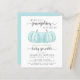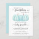 柔らかい灰色のタイポグラフィとスウェッシュとスクリプトの混書合、パンプキンフレンドリーの青い水色の「2つの甘い小さなカボチャが彼らの道にある」を特徴とするかわいい陽気で予算の高い双子の男の赤ちゃんの招待。母の名前とシャワー詳細をシンプルタイポグラフィグレー。