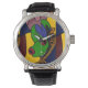 素晴らおもしろいしい抽象芸術の木のカラフルカエルオリジナルアートデザイン腕時計おもしろいギフトユニークを作る。注文時にカスタム文字を追加し、背景色を変更できる。