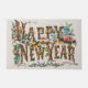 1876年にカーライアー&アイヴスがオリジナル出版した、ツリートランクに「ハッピー・ニュー・イヤー」の文字を書き、ホーリー、アコルンと花で飾った、一年の様々な季節をお祝いするビンテージイラスト新年のデザイン
