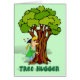 ツリー・ハガー。ツリー・ハガーという言葉を彼女の下に持って木を抱く少女の漫画。郵便切手のマッチングが可能。