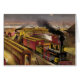 夜の列車のヤードのアーカイブのイメージの夜行列車の場面そしてスローガン。 列車のためのTシャツ、ポスター、マグおよび他の項目は、歴史のもみ革およびアメリカファン送風します。