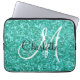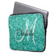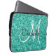 ティール(緑がかった色)きらめくグリッターモノグラムの ラップトップスリーブ