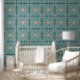 ティール(緑がかった色)とピンクのフローラタイル壁紙 壁紙