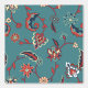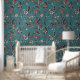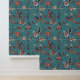 ティール(緑がかった色)と赤ペルシャ花の柄 壁紙