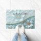 ティール(緑がかった色)の白フローラ形式 ドアマット
