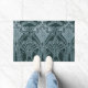 、ティール(緑がかった色)の銀美しい、アールヌーボーパターン、花柄、m ドアマット