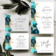 ティール(緑がかった色)アクア金ゴールドフローラQRコード結婚 招待状