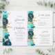 この離れ結婚式招待状の手の端はティール(緑がかった色)ブルーとアクアのフローラを備えモダン、金ゴールドホイルの葉縁どをトリミングします。カスタマイズ可能な文字は、白い背景に木炭グレーのスクリプトとサンセリフのフォントを組み合わせている。裏面はQRコードのゲスト結婚がウェブサイトやRSVPを訪問するためにスキャンすることができ救る、の詳細のための宇宙を提供して、別のRSVPカードを印刷および郵送のコスト。