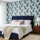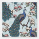 このエレガントティール(緑がかった色)の孔雀とマグノリアの花フローラChinoiserieスタイルパターンは、手で描いた青とティール(緑がかった色)の孔雀がマグノリアの木の枝に開花で持ち、マグノリアの開花のシルエットと柔らかい青の背景に。