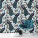 ティール(緑がかった色)エレガントピーコックスとモノリア花フローラ 壁紙