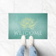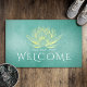 ティール(緑がかった色)エレガント金ゴールドロータスヨガインストラクターウェルカム ドアマット