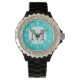 ティール(緑がかった色)四分箔格子四分箔モノグラムパーソナライズされたイニシャルカスタム織物模様腕時計