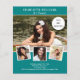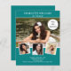 独自の写真ユニークコラージュを作成4枚、4枚の写真を使お気に入りの用する。名前とパーティー・詳細のパーソナライズおよび追加ティール(緑がかった色)、緑の背景、白い文字。1枚= 1枚の招待状を印刷したエッジからエッジ