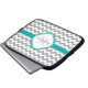 ティール(緑がかった色)グレーシェブロンパターン&モロッコクローバー ラップトップスリーブ