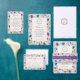 ティール(緑がかった色)パープルイエロー春メドウフラワー結婚ズ 招待状
