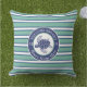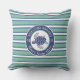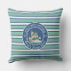 アクアモダンティール(緑がかった色)ブルーとホワストライプのイ航海のトボートネーム歓迎装飾用クッション