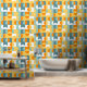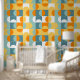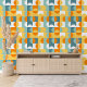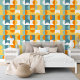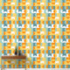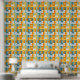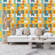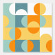 ティール(緑がかった色)ブルーグリーンイエローオレンジサークルアートパターン 壁紙