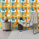このデザインはモダン、白い背景を背景に海底緑、ティール(緑がかった色)青、黄色、オレンジ色の色合いの円と半円を持つ幾何学的パターンを示す。インテリアデザイエレガントザ、デコ愛好家、トレンドセッター、ヴィンテージレトロや抽象芸術デジタル幾何学モチーフのファンに最適なスタイリッシュ、多彩なミニマリズムを具現化したデザインとである。ま華美たファンキー、このヒップスターのパターンは汎用性があり、様々なホームデコのアイテムで利用できコンテンポラリー、マスターや子供のベッドルーム、キッチン、子供部屋、リビングルーム、女性の洞窟、大学の寮、マンション、スタジオ、アパートなどの宇宙の雰囲気を高めるのに適している。