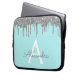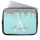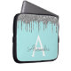 ティール(緑がかった色)ブルーシルバーグリッタースパークルモノグラム ラップトップスリーブ