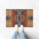 ティール(緑がかった色)ブルーダークレッドベージュブラウンオレンジトライバルアート ドアマット