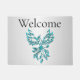ティール(緑がかった色)ブルーフェニックスアップオンシルバーウェルカム ドアマット
