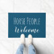 あなたのモダン家や納屋のための可愛いドormat:馬の人々歓迎!デフォルトの背景色はティール(緑がかった色)だが、すべての色(および文字)を変更できる。完璧な馬小屋の暖かい贈り物、馬好きギフトまたはあなたの乗馬小屋への追加。
