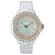 ティール(緑がかった色)及びコーラルヒョウ印刷ナースRN 腕時計