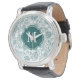 まスタイリッシュた、このティール(緑がかった色)と白い花パタエレガントーンのモノグラム時計は、どのような衣装にも最適なアクセサリーである。