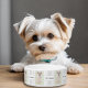 このペットボウルにはモーキーの犬が描かれています。背景、画像、テキストをカスタマイズできます。 また、付属の犬の画像をあなた自身の犬の画像に差し替えるオプションもあります。