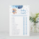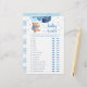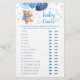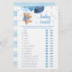 この編集可能カードと楽しむ青と銀の吹き出しテディ熊のベビーの特徴ゲームあなたのイベントのために購入!これはカードテンプレートであり、あなたが好きなようにカードをパーソナライズし、文字を変更することができる!ベビーシャワー活動!ゲームを推察する。