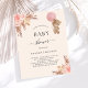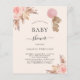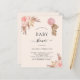 ボホモダンスタイルの赤ちゃんシャワー。ソフトベージュの背景。飾バラ金ゴールドとピンク花模様、バラ、パンパスグラスとピンク色のバルーンを持つテディベアの女の子。名前とパーティー・詳細のパーソナライズおよび追加1枚= 1枚の招待状を印刷したエッジからエッジ