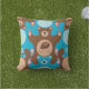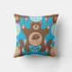 テディベア茶色の青モノグラムキッド屋外ピロー クッション