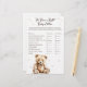 この甘いベビー価格は正しいゲームで行く赤ちゃんシャワー笑いを得る!このゲー魅力的ムカードは、一般的なベビーアイテムの価格を推測するためにあなたのゲストに挑戦する。トータルプライスが最も近い人が勝つ!それはおもしろいと簡単の方法で皆を笑わせて得婚約したる。デザインは暖かく魅力的で、柔らかいニュートラルなトーンでテディのクマの手のスタイルイラストを持つ。繊細な紙吹雪点はよくはしゃぐtouch。このゲームは、任意の赤ちゃんシャワーに完璧な追加され、途中の小さな祝人のための楽しい活動を提供する。