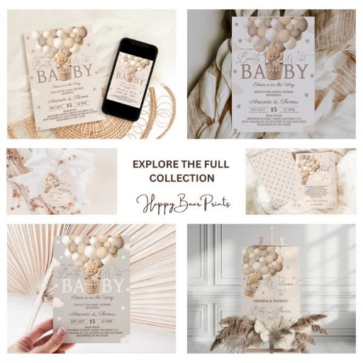 Teddy Bear熱気球をテーマにした赤ちゃん男女兼用シャワー招待状。一致するアイテムが利用可能で、親切なメッセージをzazzle経由。