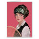 この若い婦人はテニスの試合の準備ができている。ヴィンテージの女性の背景は深いピンク。内側のカードが用意されカスタマイズた。