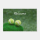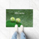 テニスボールが緑の芝生の上にあり、テニスプレーヤーのホームウェルカムドアマット