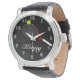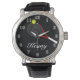 こクールのファンキーエレガントトレンディーの腕時計。白い数字のトレンディーの美しい時計だ。PNGファイル赤と白にライムグリーンのテニスボールを持つ明るいテニスラケット。文字とバックグラウンドカラーを任意に変更できる。