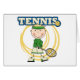 テニスのスポーツを愛すればラケットを持つ私達の棒の姿の金髪の男の子を大いに楽しみ、テニス・ボールはテニスのTシャツで、マグ、磁石、トートバック、カード、ステッカーおよび他のテニスの衣類およびギフト設計します。
